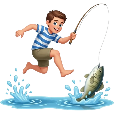 a guy jumping into the water for a fish emoji
