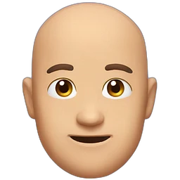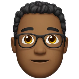 expressive Twitch emote of a cartoon-style character in an emoji-like art style. Bright colors, outlined, transparent background. Use the following face: male person in their early 30s, brown skin, bald, with glasses and a gentle face. emoji
