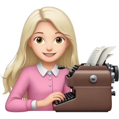 smiling white long brunette hair girl with hazel eyes typing on a typewriter emoji