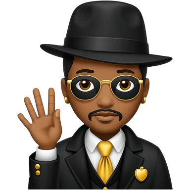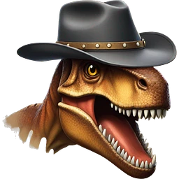 A Tyrannosaurus rex, striding confidently with a jeweled pimp cane in its tiny forelimbs, grins with predatory dominance under the Mesozoic sun. emoji | AI Emoji Generator
