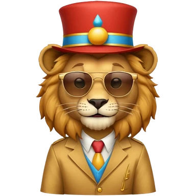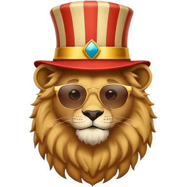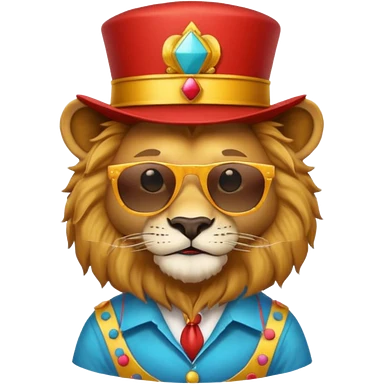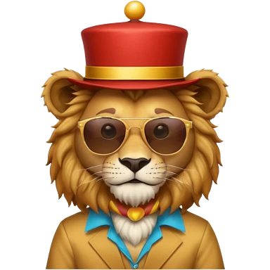 a sunglasses lion with circus hat and shirt emoji