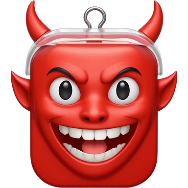 A package of dental floss with a smiling horny devil face emoji