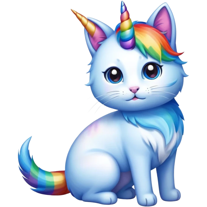 a unicorn cat. blue with rainbox tail emoji | AI Emoji Generator