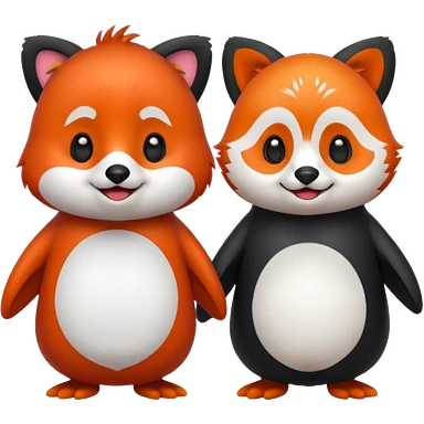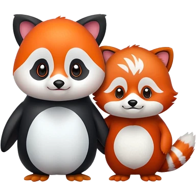 A cartoon cute one penguin and one red panda seperste animals note a combination of the animals holding "hands" emoji
