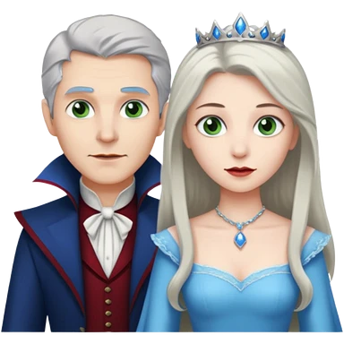 A tall vampire man with gray hair and blue eyes. A princess with light brown hair and green eyes emoji