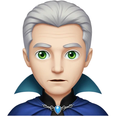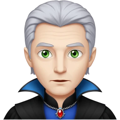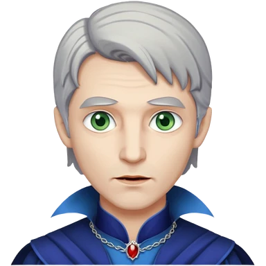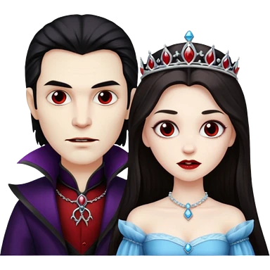 A vampire man with gray hair and blue eyes and a princess with light brown hair and green eyes emoji