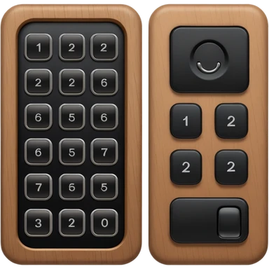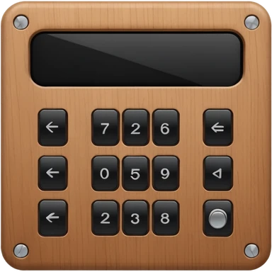 wooden rectangle keypad with a black small screen and a door holder emoji