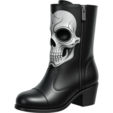 Hyperrealism, rendering, isolated, ultra detailed, vegan leather mid calf Demonia Muerto boots, with a silver chrome element, 8k. No emoji icons, no emoji faces emoji