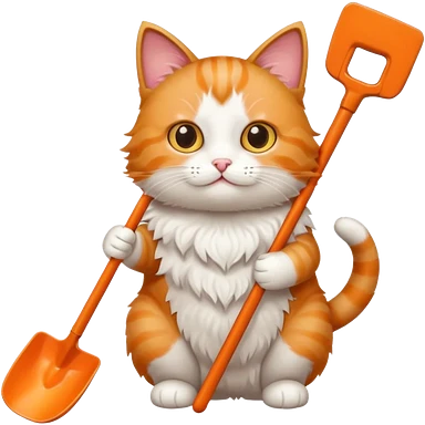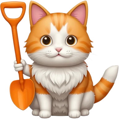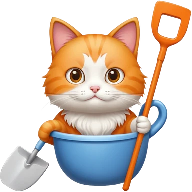 A very cute cat holding a toilet shovel, a litter box beside it emoji | AI Emoji Generator