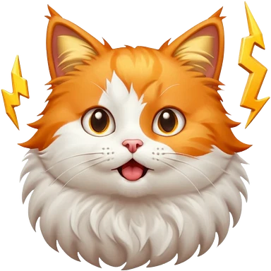 A very cute cat that got shocked from electricity, lightning around it emoji