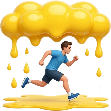 a guy runs for his life as yellow thick rain come down from the sky it might be egg yolks emoji