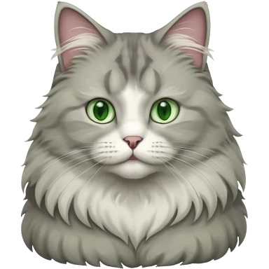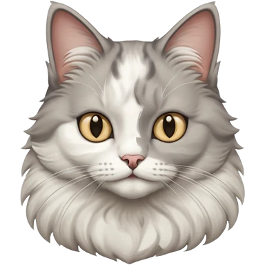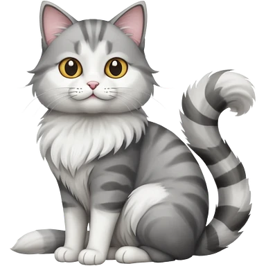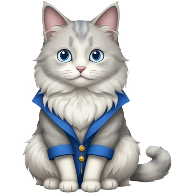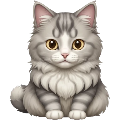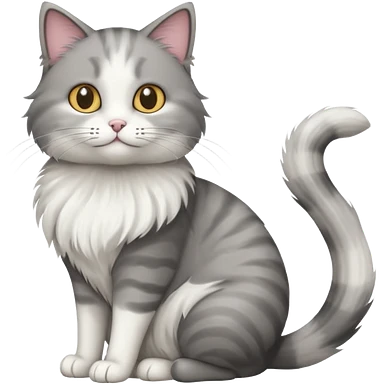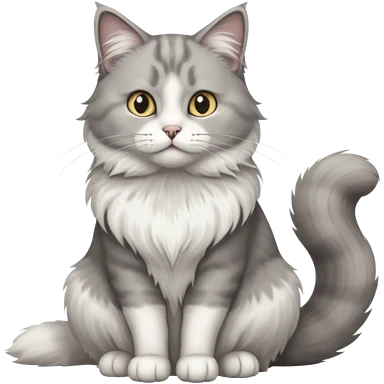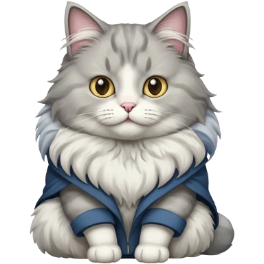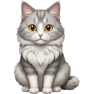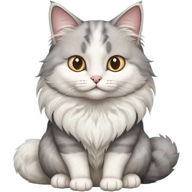 a very fluffy big grey and white cat sitting regally emoji