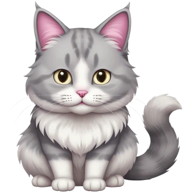 a very fluffy big grey and white cat sitting regally emoji | AI Emoji Generator