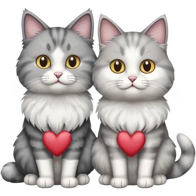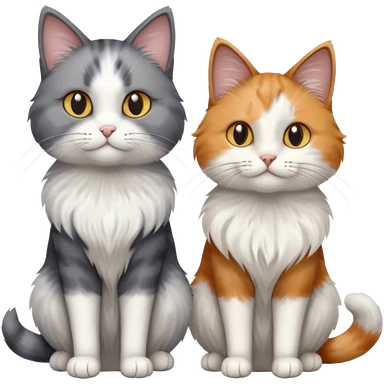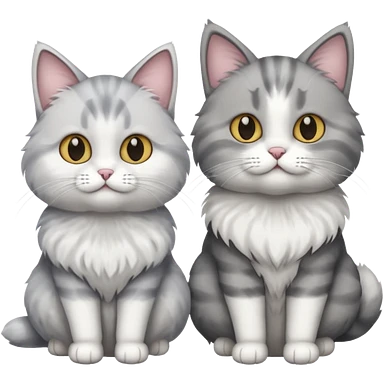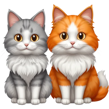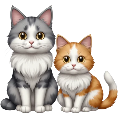 a realistic looking very fluffy grey and white cat sitting next to another cat emoji