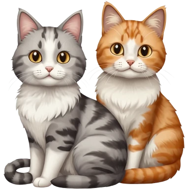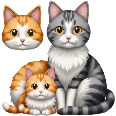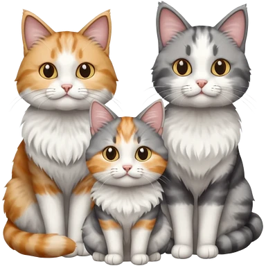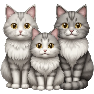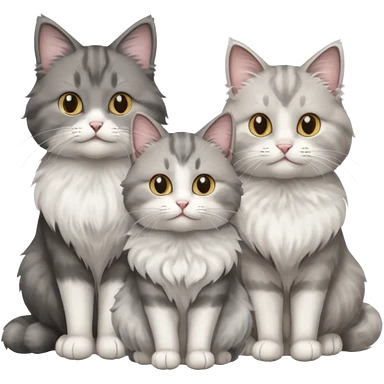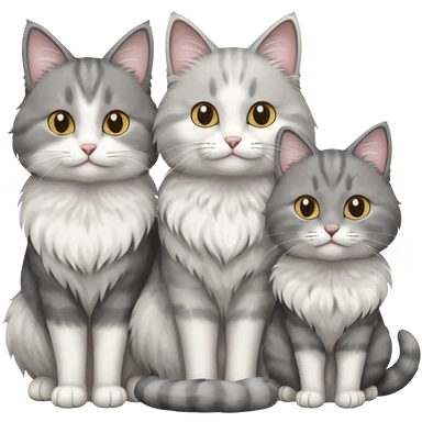 a very fluffy grey and white cat sitting with 2 other cats emoji
