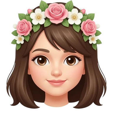 A dainty flower crown made of blush roses, white blossoms, and soft green leaves, looking romantic and graceful. emoji
