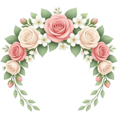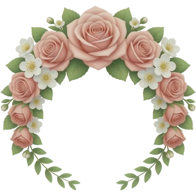 A dainty flower crown for the hair made of blush roses, white blossoms, and soft green leaves, looking romantic and graceful. emoji