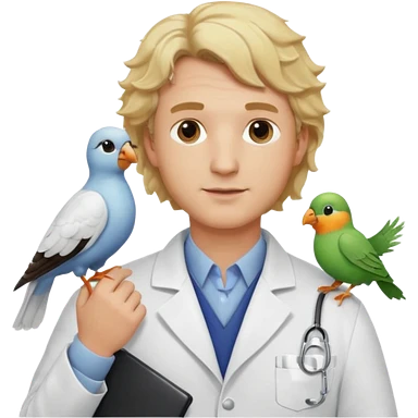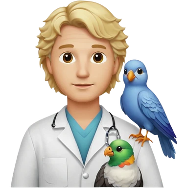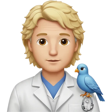 a blonde wavy hair man vet with a bird on his shoulder emoji