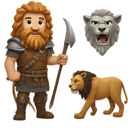 Scandinavian Viking with a sword in his hand and an angry mood in Minecraft style emoji