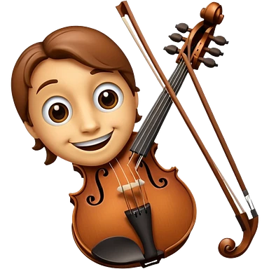 A violin with its bow. It has eyes and a smiling mouth. emoji