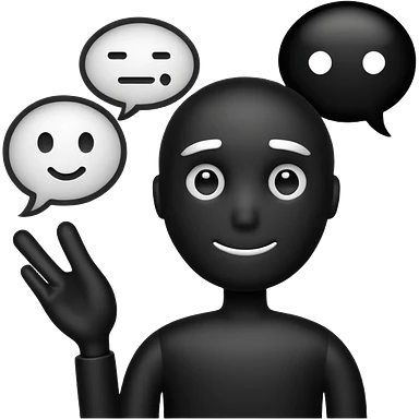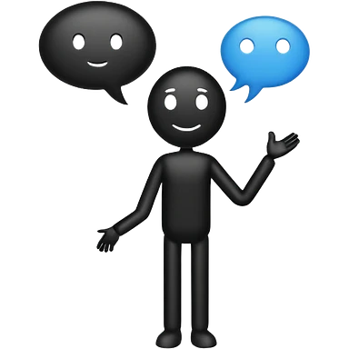 A white and black stick mand with a chat bubble coming from his mouth (encircled) emoji