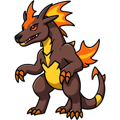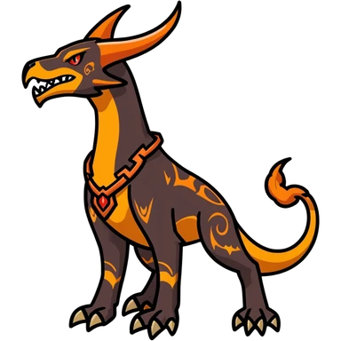Copper-Bronze Molten-Lava Glow-Cracked Fiery-Runed Draconic Houndoom-Garchomp-hybrid-creature (full body) emoji