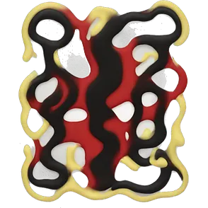 A wavy black and red rectangle with a medium sized yellow circle emoji