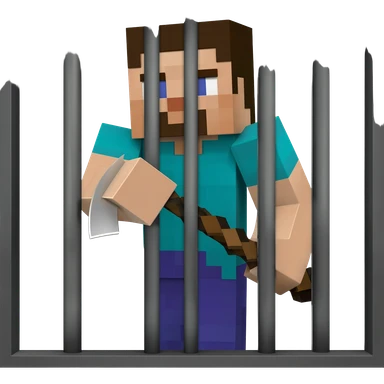 Half of a minecraft character holding a pickaxe behind bars emoji