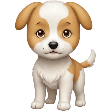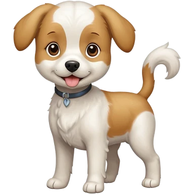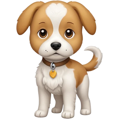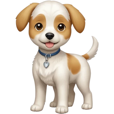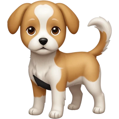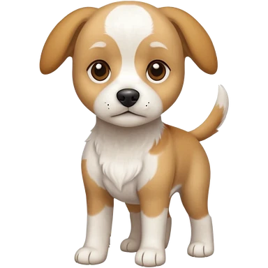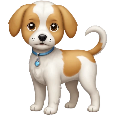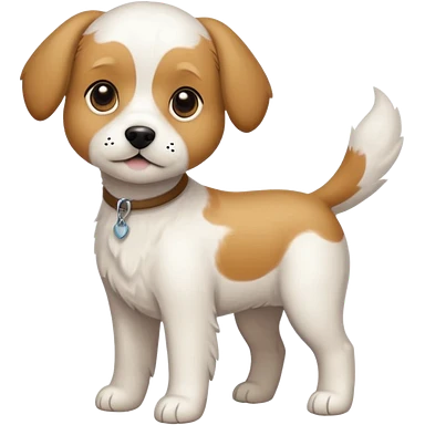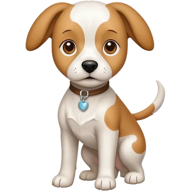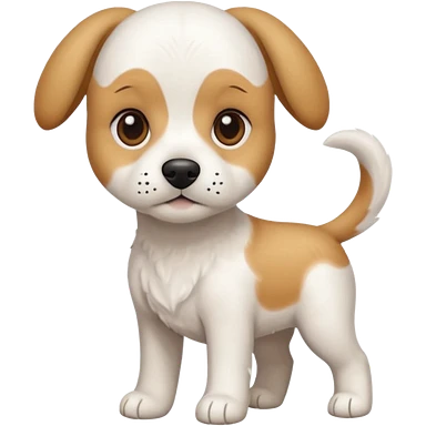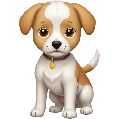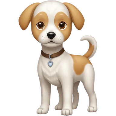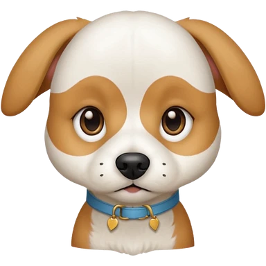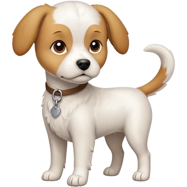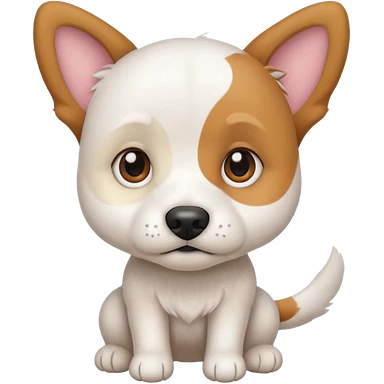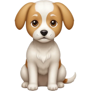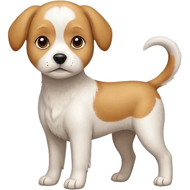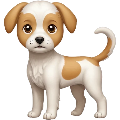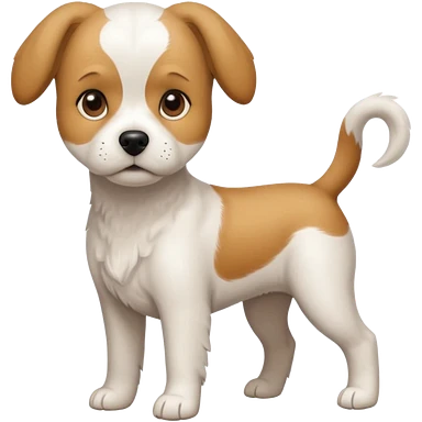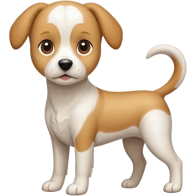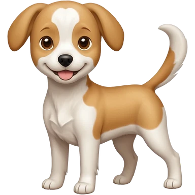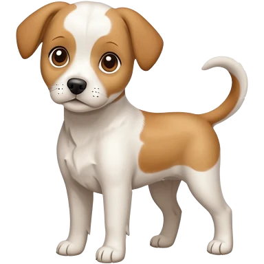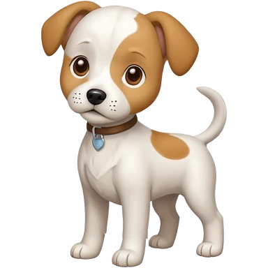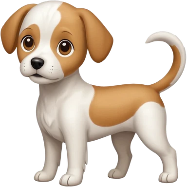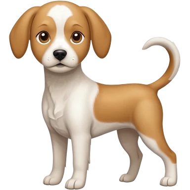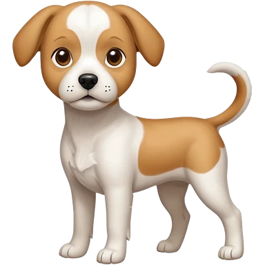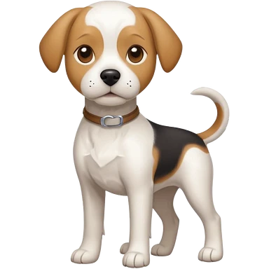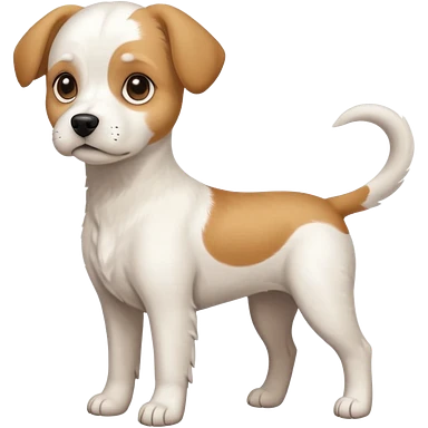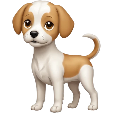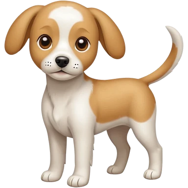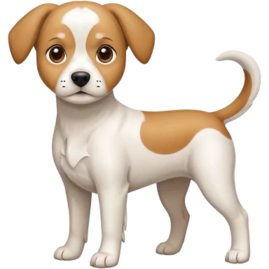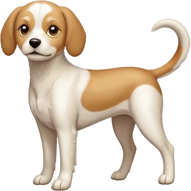 a white beagle x maltese x chi dog the size of a kelpie with light brown ears and a light brown patch on one eye emoji | AI Emoji Generator