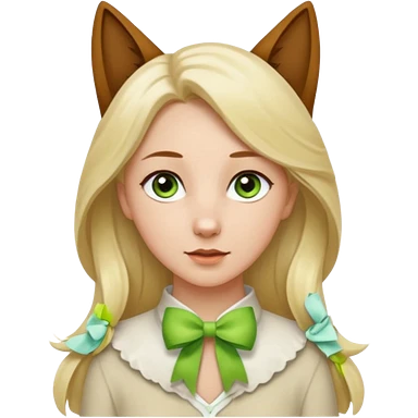 Blonde girl with long hair, with green eyes in a black dress with a white neckline emoji