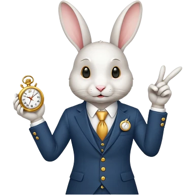 White Rabbit in a suit pointing at a handwatch emoji