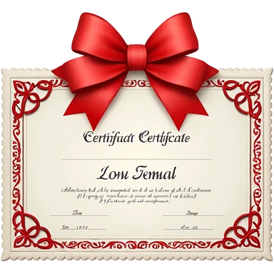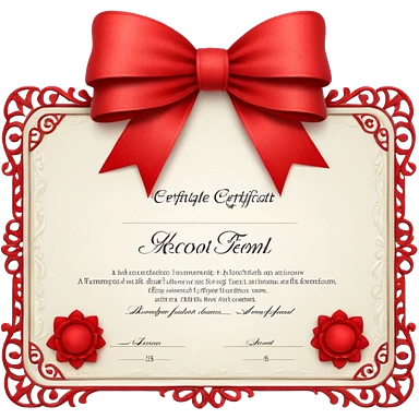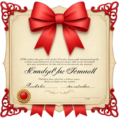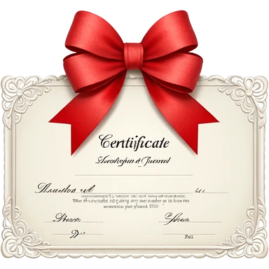 a white certificate with a bow on a black background. Lots of details. perspective emoji