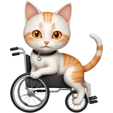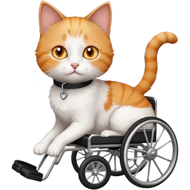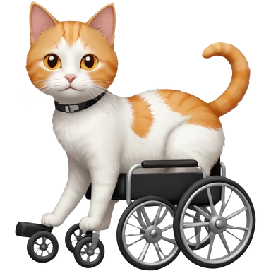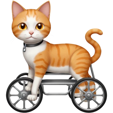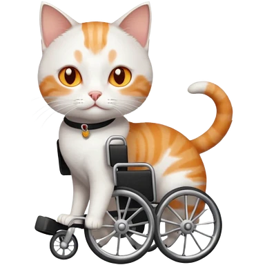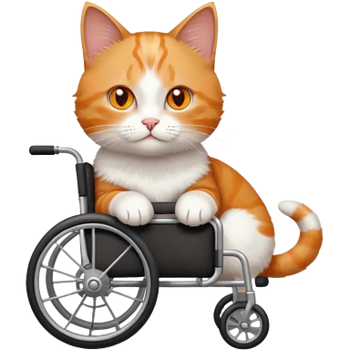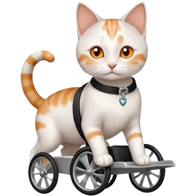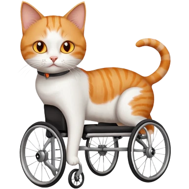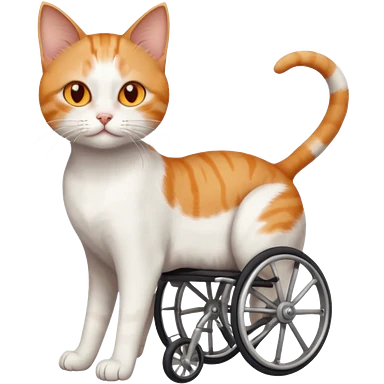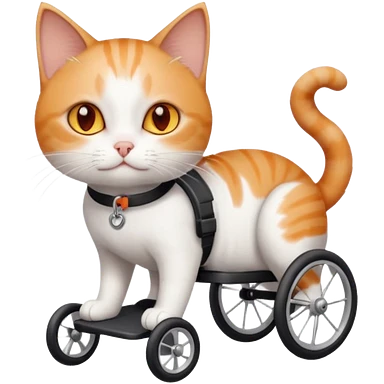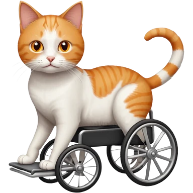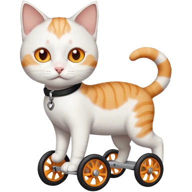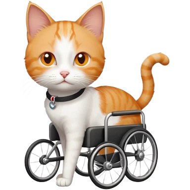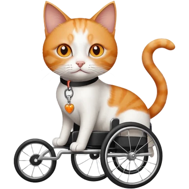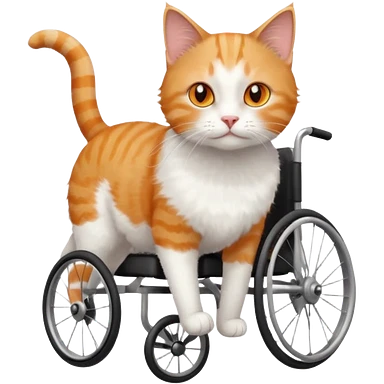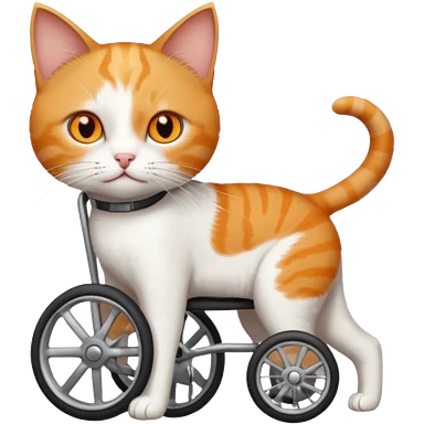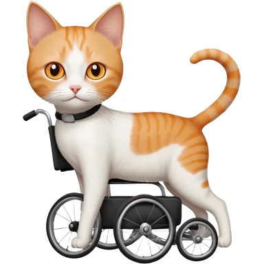 full body small short hair ginger and white cat with orange eyes walking in a wheelchair for cats emoji