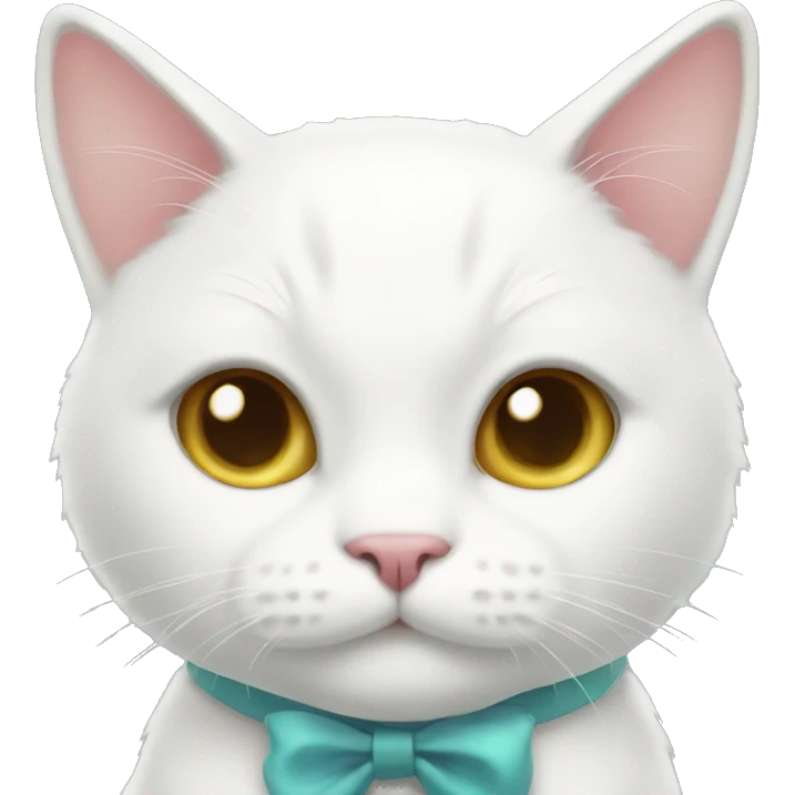 A white cat with a bow smiling emoji | AI Emoji Generator