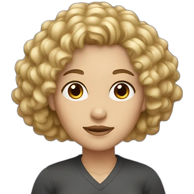 A white woman with curly dark brown hair and blonde streaks in the front emoji