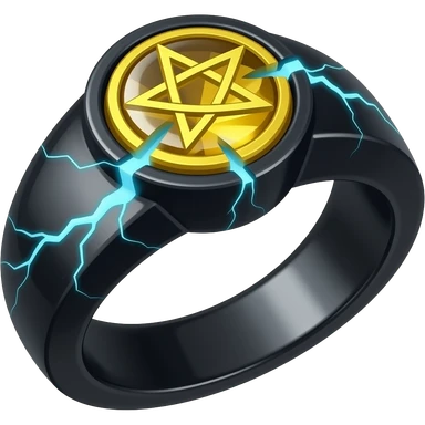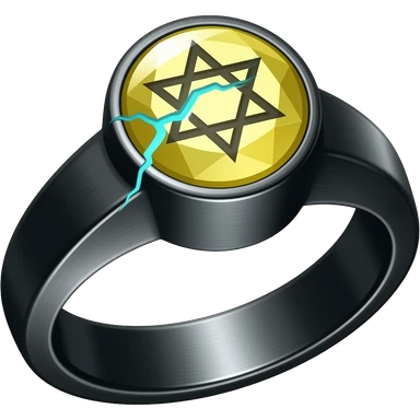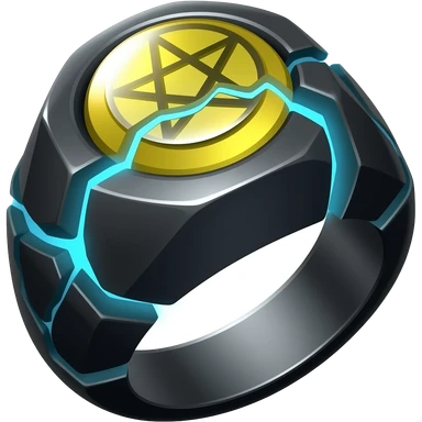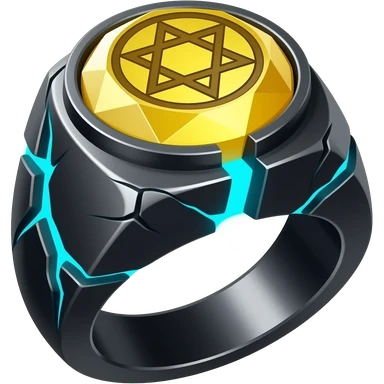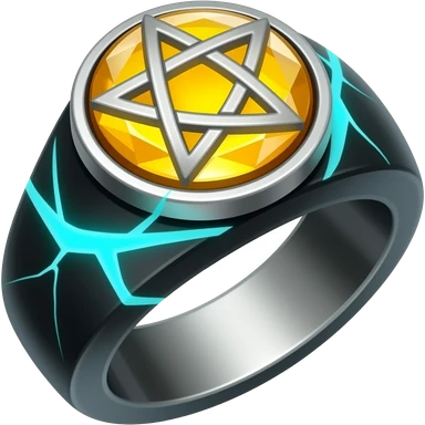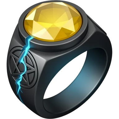 A obsidian ring with a BIG yellow gem, that has a pentacle carved into it, and a crack goin through it glowing light blue emoji