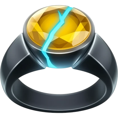 A obsidian ring with a BIG yellow gem, that has a tr and a crack goin through it glowing light blue emoji