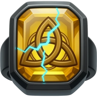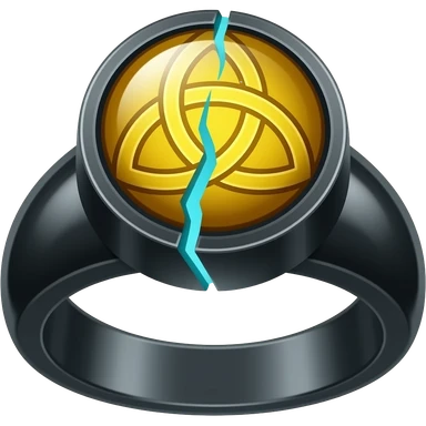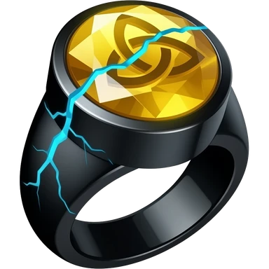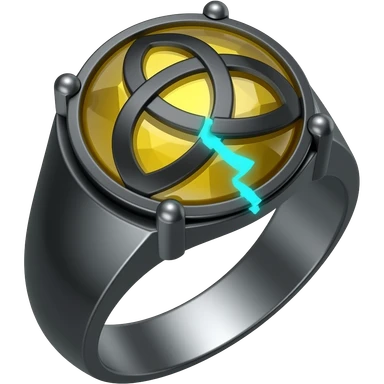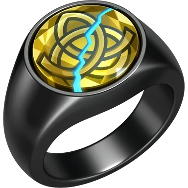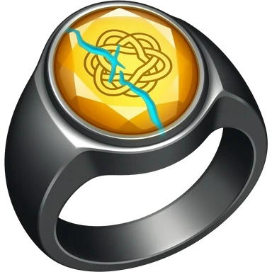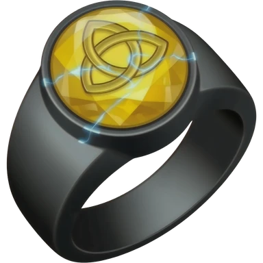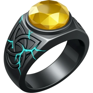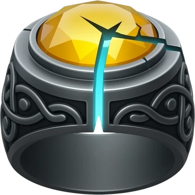 A obsidian ring with a BIG yellow gem, that has a triquetra carved into it, and a crack goin through it glowing light blue emoji