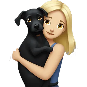 A white girl hugs a black dog emoji | AI Emoji Generator