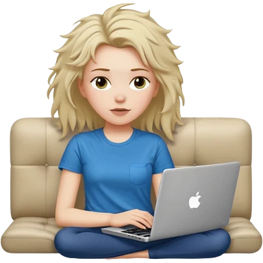 A white girl is lying on a sofa with a laptop emoji | AI Emoji Generator