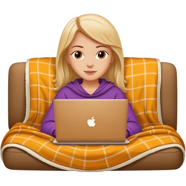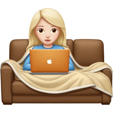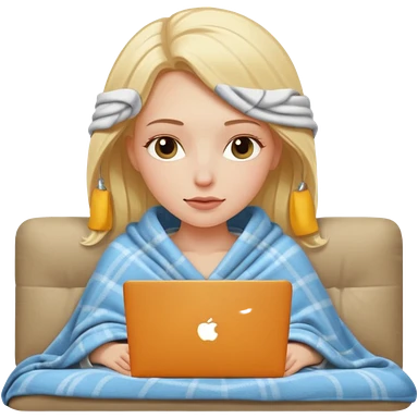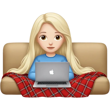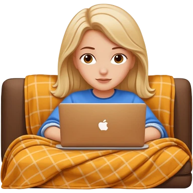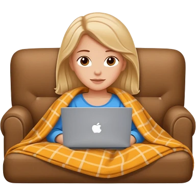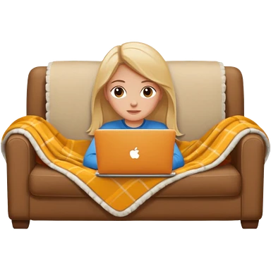 A white girl lies on a sofa under a blanket with a laptop emoji | AI Emoji Generator