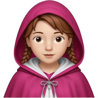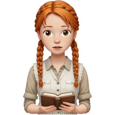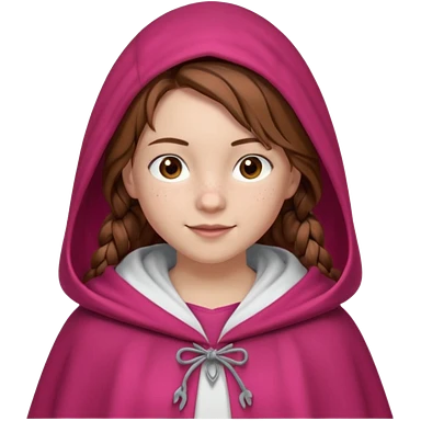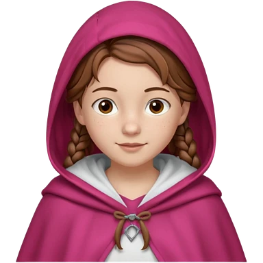 A white girl wearing white T-shirt with two braids and bangs with pink ribbon bow on each braid looking forward..black hair and brown eyes small nose and pink lips emoji | AI Emoji Generator