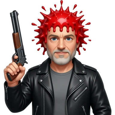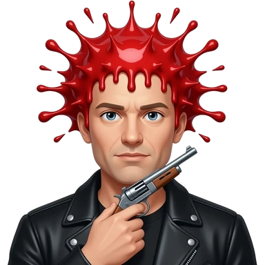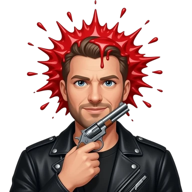 A white guy with a black jacket, his head is completely gone and replaced with a red liquid explosion, with a shotgun pointed up under his chin emoji