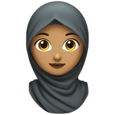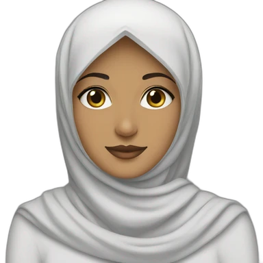 a woman with khaki colour hijab, brown eyes, holding a white cat emoji