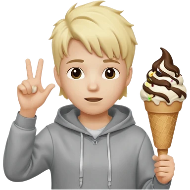 A kid with blonde hair and ice cream hair, Grey ESSENTIALS sweater, gray Nike shoes, Grey pants and he is white. emoji