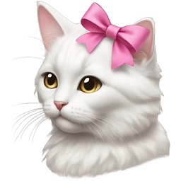 Angry baby kitty that’s white and fluffy with a pink bow on head emoji