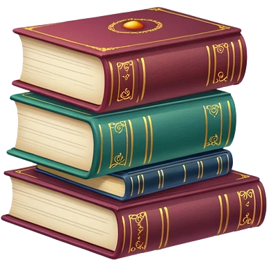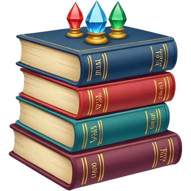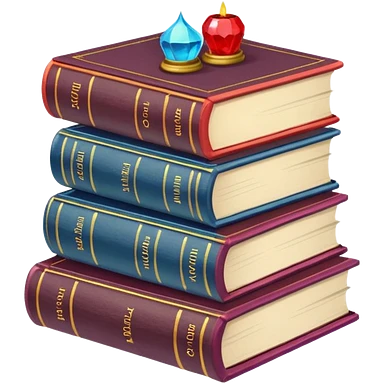 A stack of colorful spellbooks that look like they came out of a fine victorian library emoji