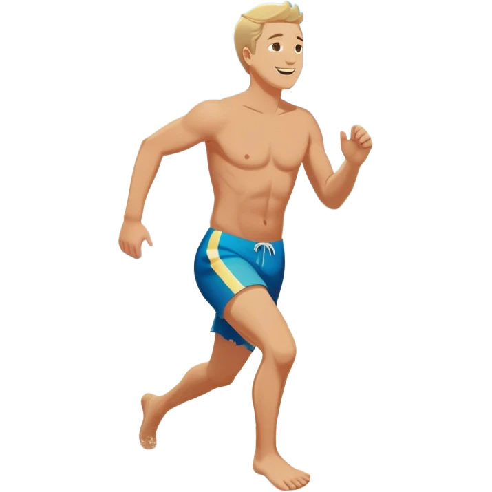 A white man running into the ocean, paisaje embracing the waves and the moment. The sun shines warmly, and the water sparkles, symbolizing the joy of creating fun and appreciating life’s simple moments. Their footprints in the sand fade as they fully immerse themselves in the present. emoji | AI Emoji Generator