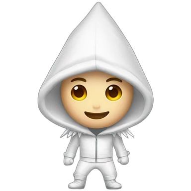 An emoji of a handsome man wearing a white hoodie, with the hood down, showing his hair, and standing confidently with a relaxed expression emoji