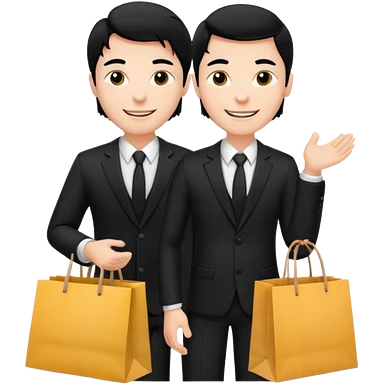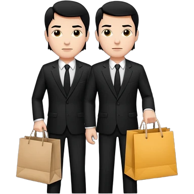 a white man black hair in a black suit with clothing shopping bag emoji